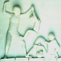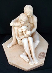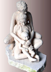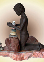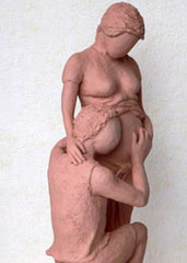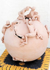 Ton gebrannt, mit Steinpyramide, Sockel Natursteinplatte